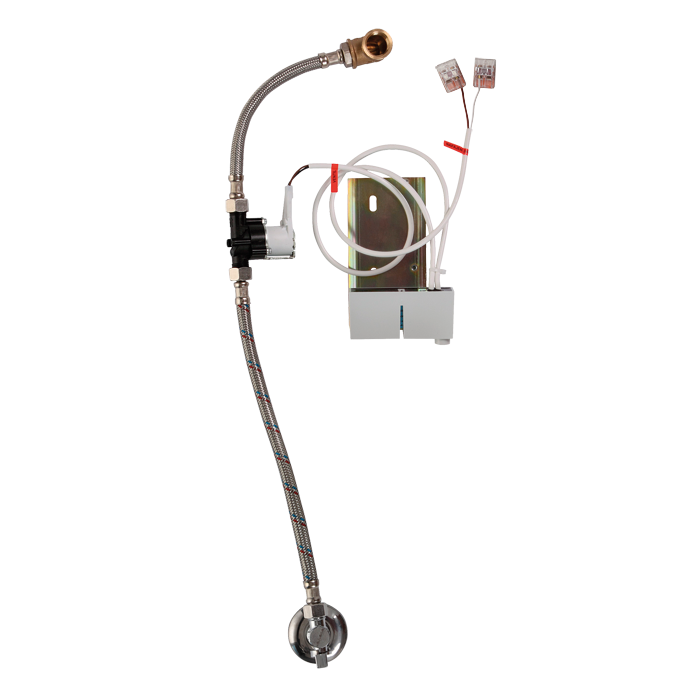 SLP 54RS - Supply No. 11545 - radar flushing unit including Bluetooth module on the mounting rail, electromagnetic valve, connecting hoses, angle valve with filter and check valve, inlet fitting with a rubber sealing, paper drill template