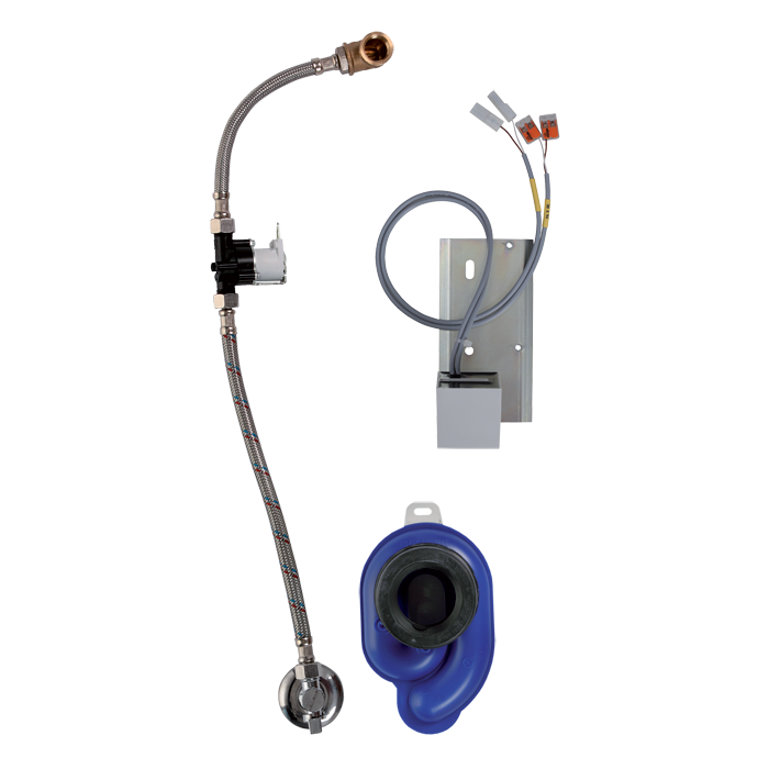 SLP 99B - Supply No. 21996 - radar flushing unit including Bluetooth module on the mounting rail, electromagnetic valve, connecting hoses, angle valve, siphon, 4 pcs. AA alkaline batteries 1,5 V, 2700 mAh with battery case