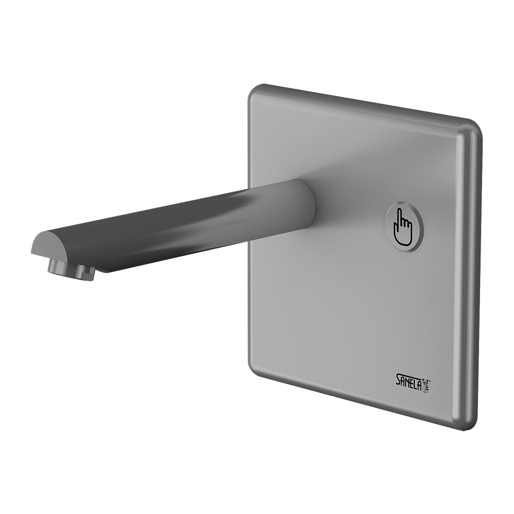 Wall-mounted piezo tap, spout of 170 mm, 24 V DC