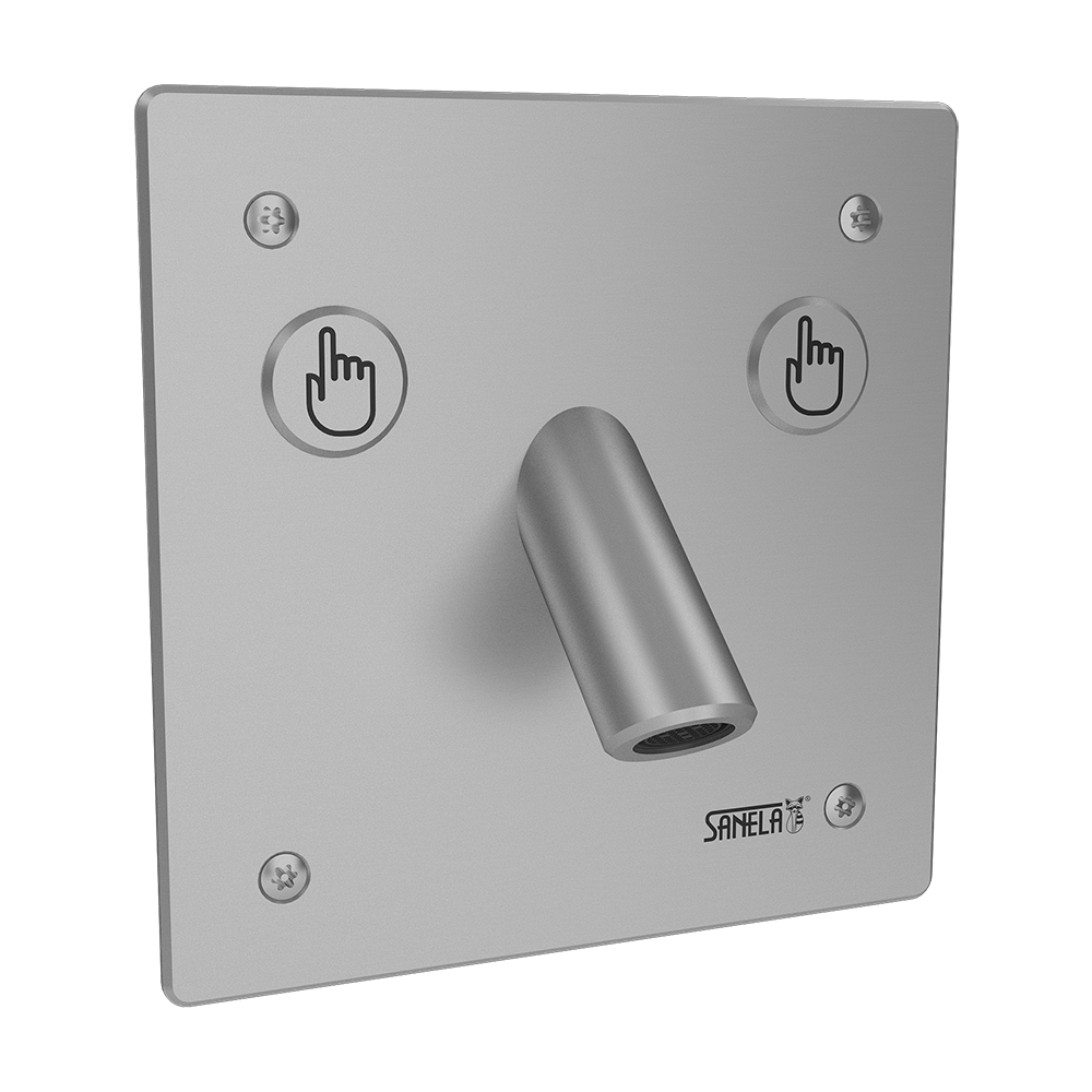 SLU 44PP - Supply No. 64442 - spout, stainless steel cover with piezo electronics (2 pcs.), stainless steel mounting box with a brass screw-coupling, electromagnetic valve (2 pcs.), ball valve (2 pcs.), safety screws (4 pcs.)