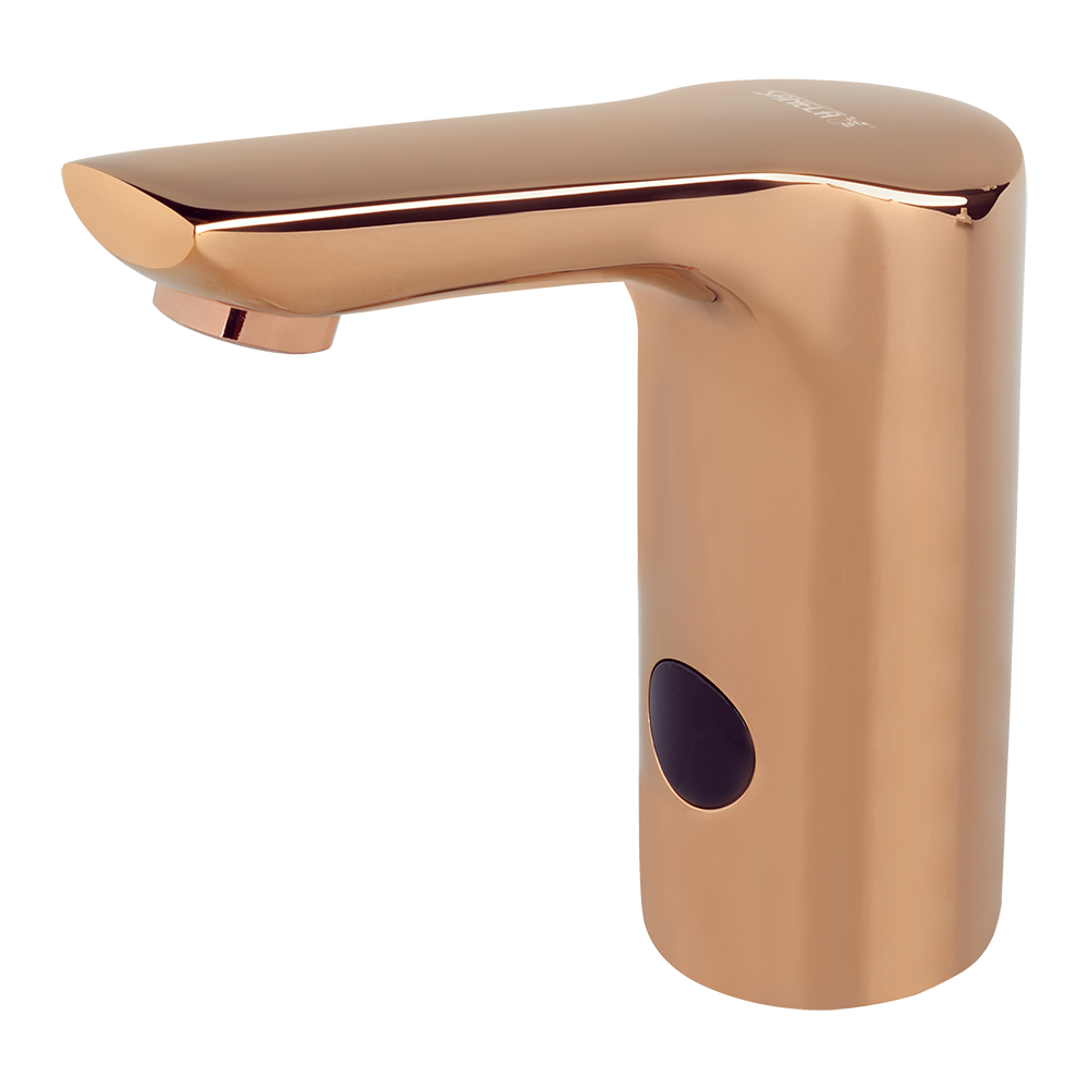 Automatic washbasin tap for cold and hot water, ROSE GOLD, 6 V