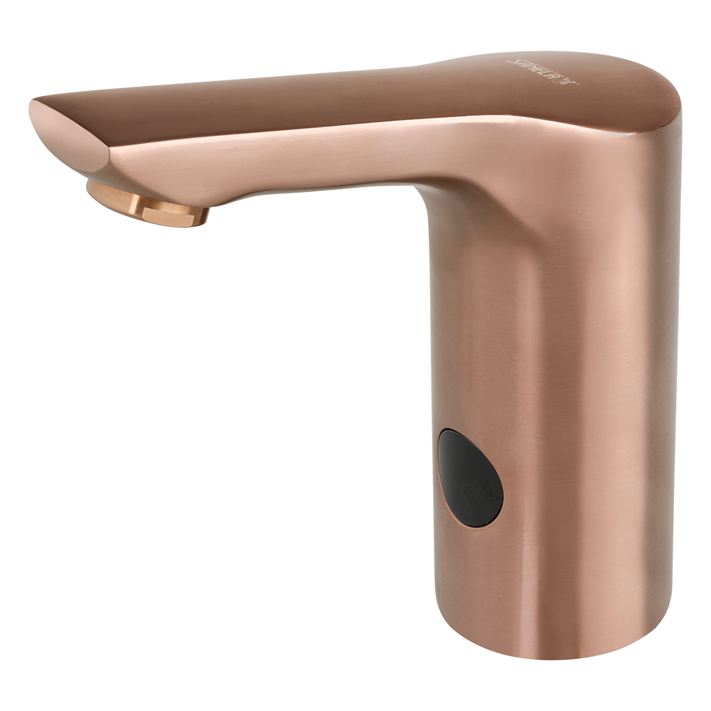 Automatic washbasin tap for cold and hot water, ROSE GOLD MATT, 24 V DC