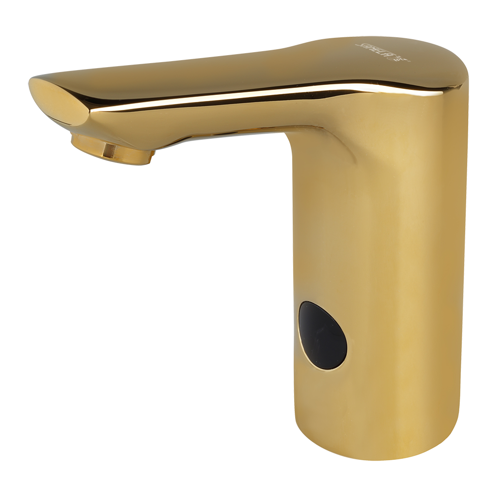 Automatic washbasin tap for cold and hot water, GOLD, 6 V