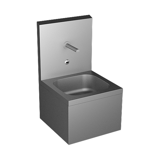 - stainless steel wall hung sink with back wall and integrated infra-red electronics