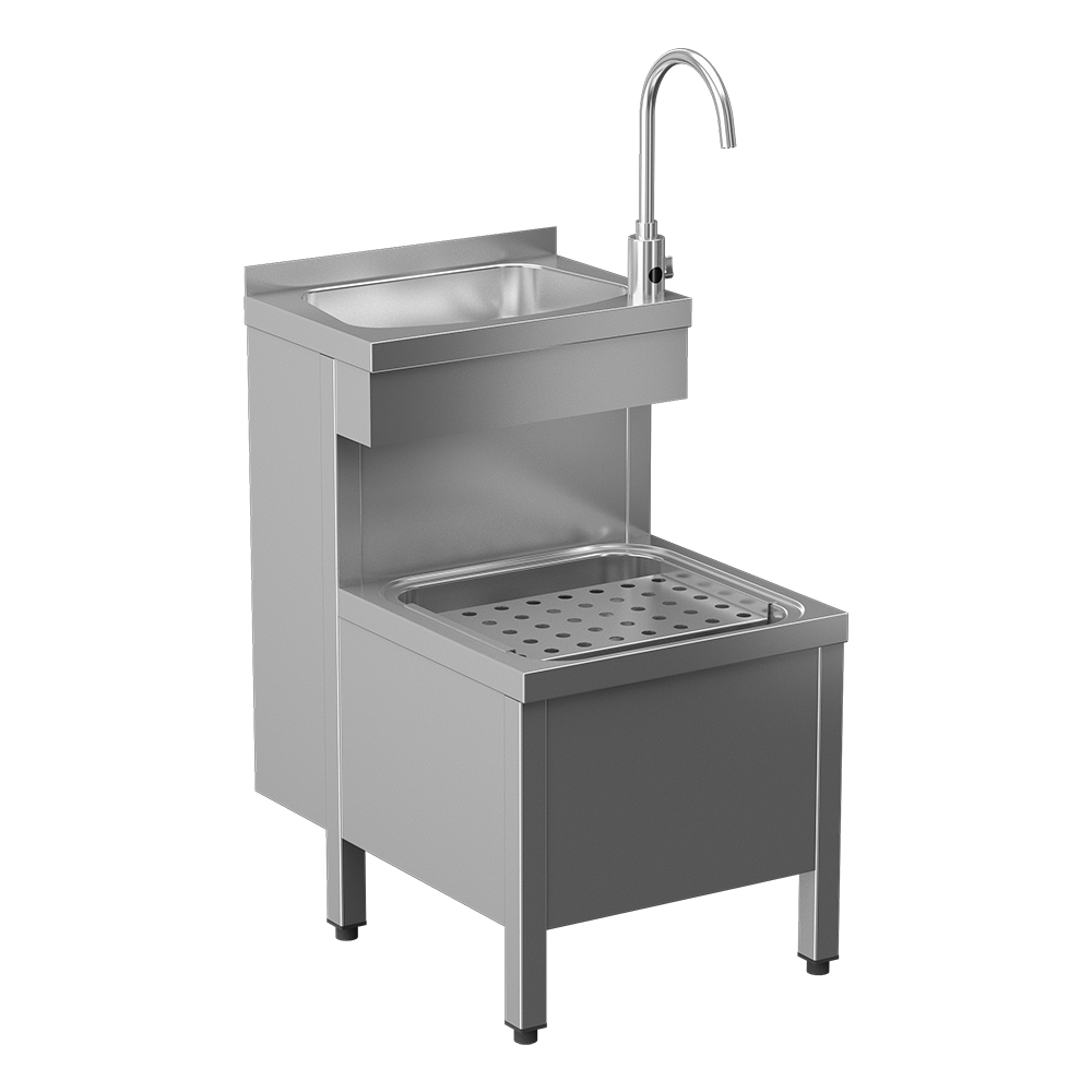 - SLVN 02EB - stainless steel floor standing combined cleaner ́s sink with washbasin, grating and automatic tap SLU 08LNDB (swivel faucet, START/STOP program