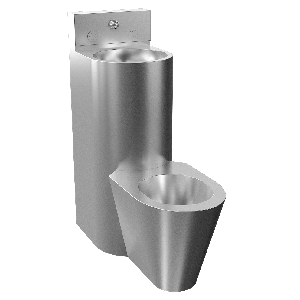 SLWN 38 - Supply No. 94382 - stainless steel combination unit with toilet and washbasin, push button (2 pcs.) washbasin spout, mounting set, set for connection