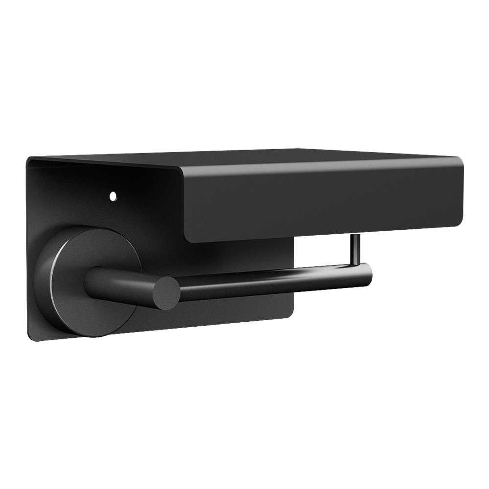Stainless steel holder of toilet paper with shelf, black matt finish