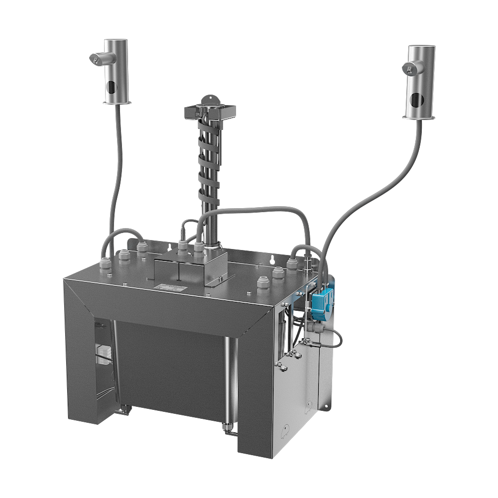 SLZN 91E2 - Supply No. 85912 - stainless steel spout with electronics (2 pcs.), inlet hoses, central soap dispenser with peristaltic pumps for liquid soap and soap container 6 l, power supply SLZ 01Y, remote control SLD 03
