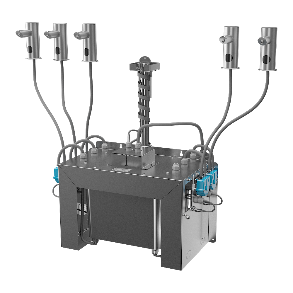 SLZN 91E5 - Supply No. 85915 - stainless steel spout with electronics (5 pcs.), inlet hoses, central soap dispenser with peristaltic pumps for liquid soap and soap container 6 l, power supply SLZ 01Y, remote control SLD 03
